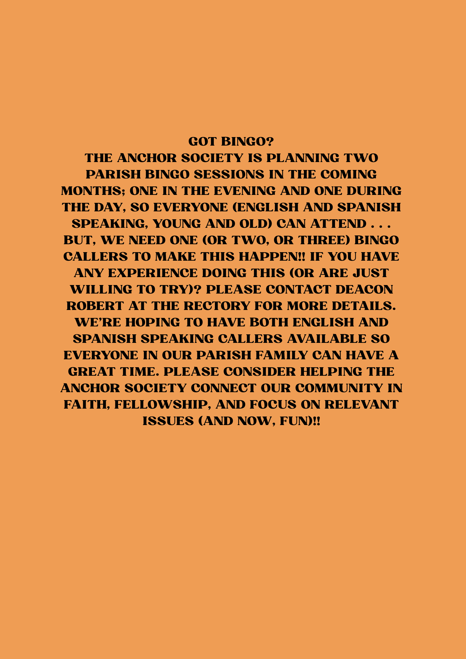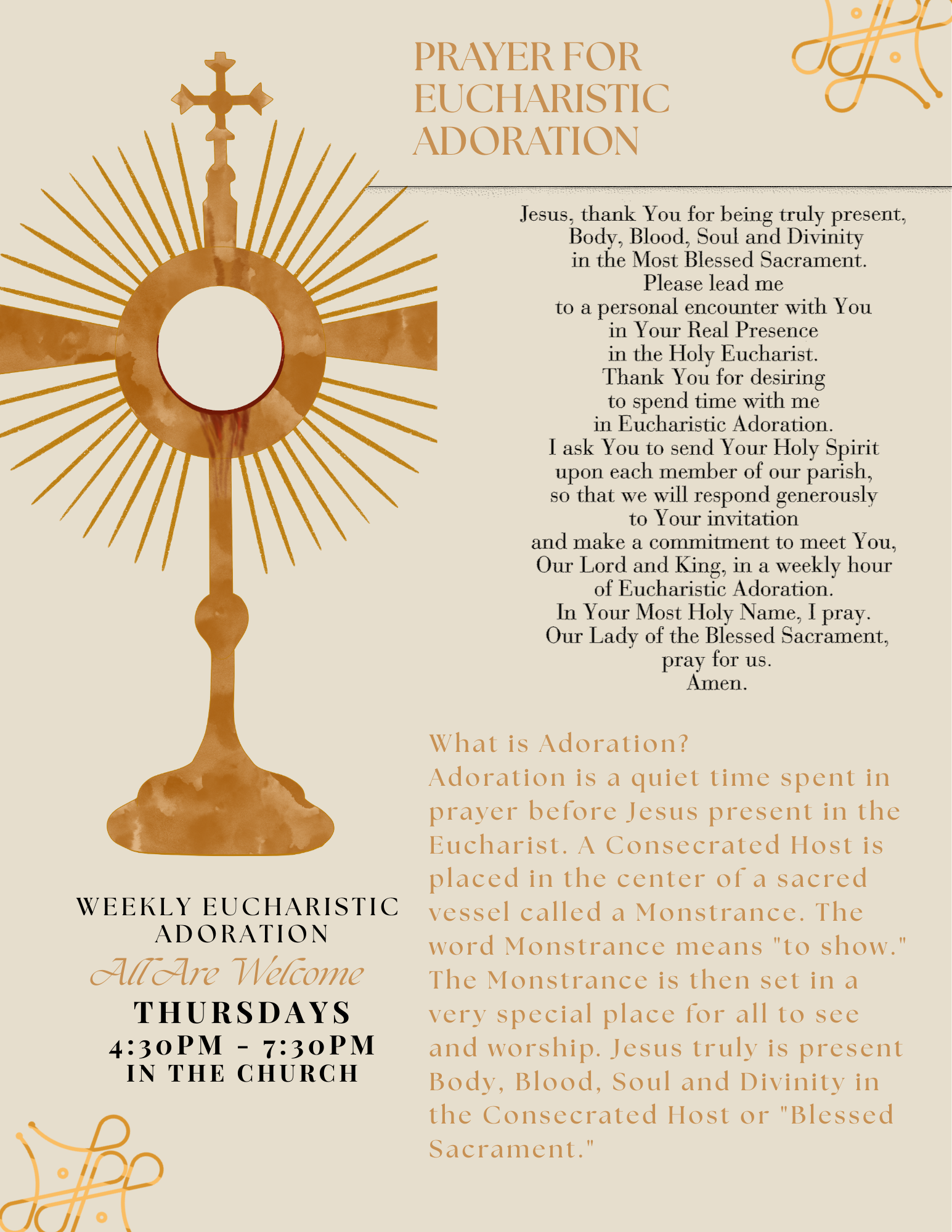 CONFESSIONS ARE HEARD SATURDAYS FROM 3:30PM - 4:30PM IN THE CHURCH’S RECONCILIATION ROOM.